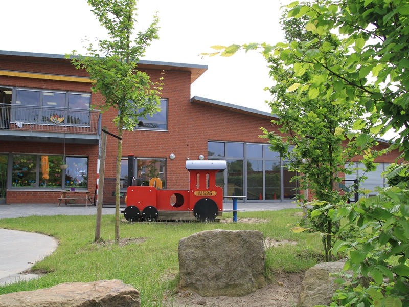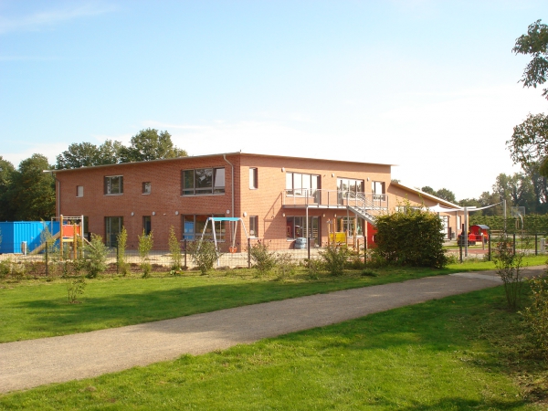 Eichenaue 3 – Im August 2008 bezog die Kindertageseinrichtung ihr neues Haus im Baugebiet “Drei Eichen“. In dem Kombinationsgebäude ist die viergruppige Kita und das Jugendzentrum untergebracht.
